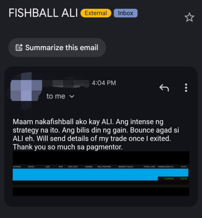 Yung mga student namin sa PSE stock trading tuwang-tuwa dahil nakafishball trade sila.
