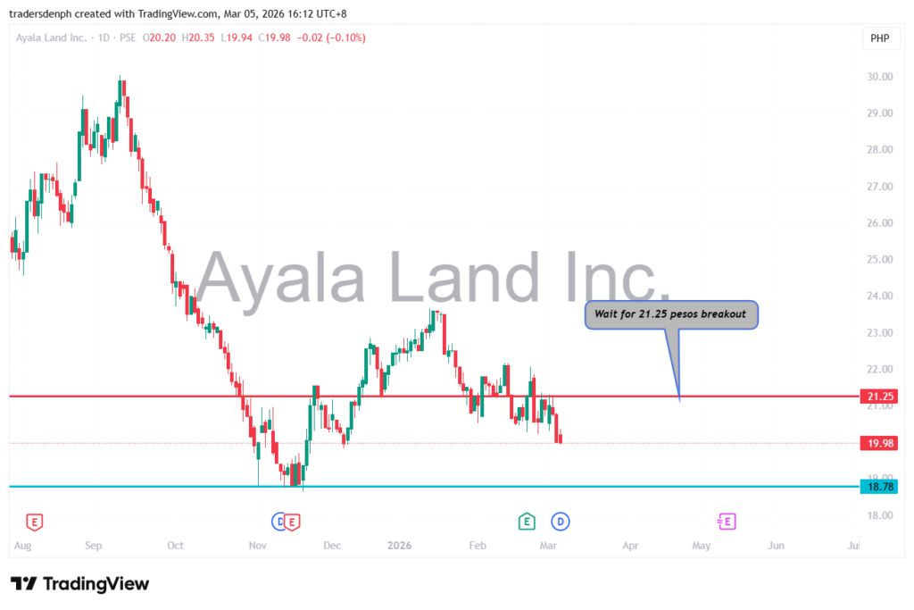 Around 21.25 pesos ang next resistance na kailangan munang mabreak ni ALI bago mo siya sakyan or pansinin.