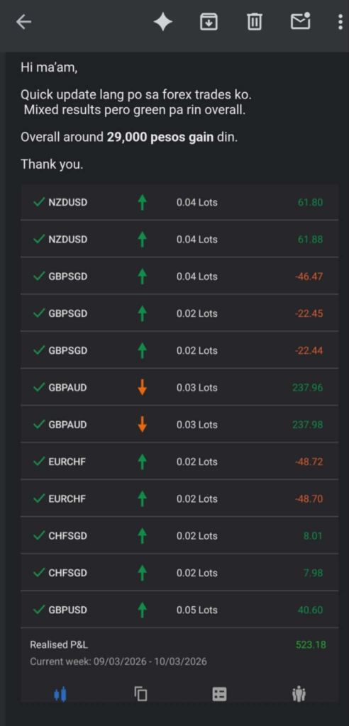 Hindi lang kasi theory ang tinuturo namin. We do a lot of live trading executions using real money sa real live na market.