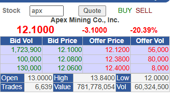 Over 20 percent ang ibinagsak ni APX kahapon.