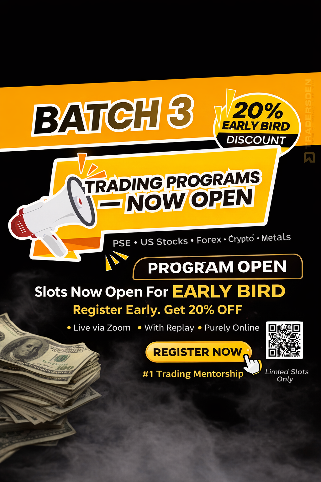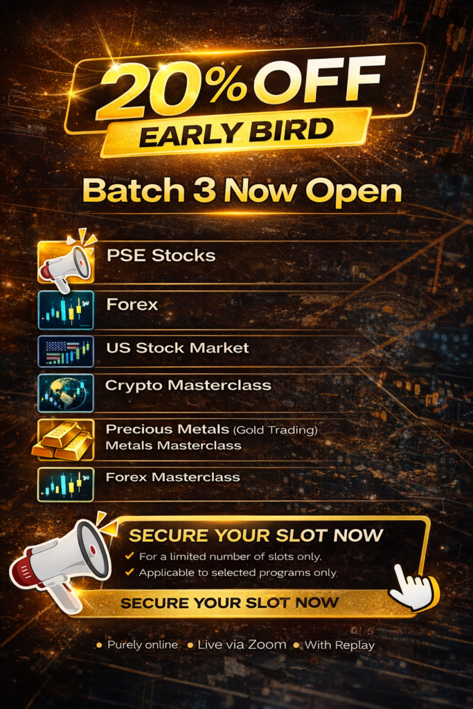Blog Avail Huge Early Bird Discounts On Our Mentorship Programs Today! March 18, 2026 / Open na ang aming mentorship programs. We are giving out huge early bird discounts! Wag na wag mo itong papalampasin! Join us here for forex, PSE Masterclass, metals, crypto and US stock market trading mentorship: https://form.jotform.com/232946879623472 Join us here for PSE stock trading mentorship: https://form.jotform.com/241343777522458 If you join us TODAY ay ang daming FREEBIES!