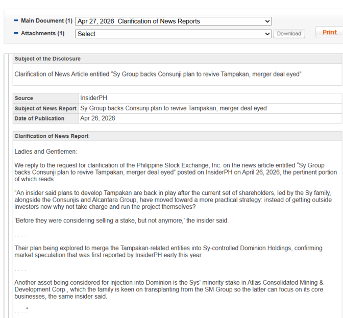 Their plan being explored to merge the Tampakan-related entities into Sy-controlled Dominion Holdings, confirming market speculation that was first reported by InsiderPH early this year.