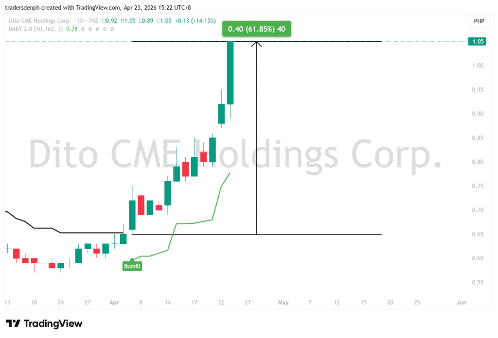 Well, as great as DITO is moving now ay anlayo pa din niyan sa traded value niya noon na almost over 1 Billion per day.