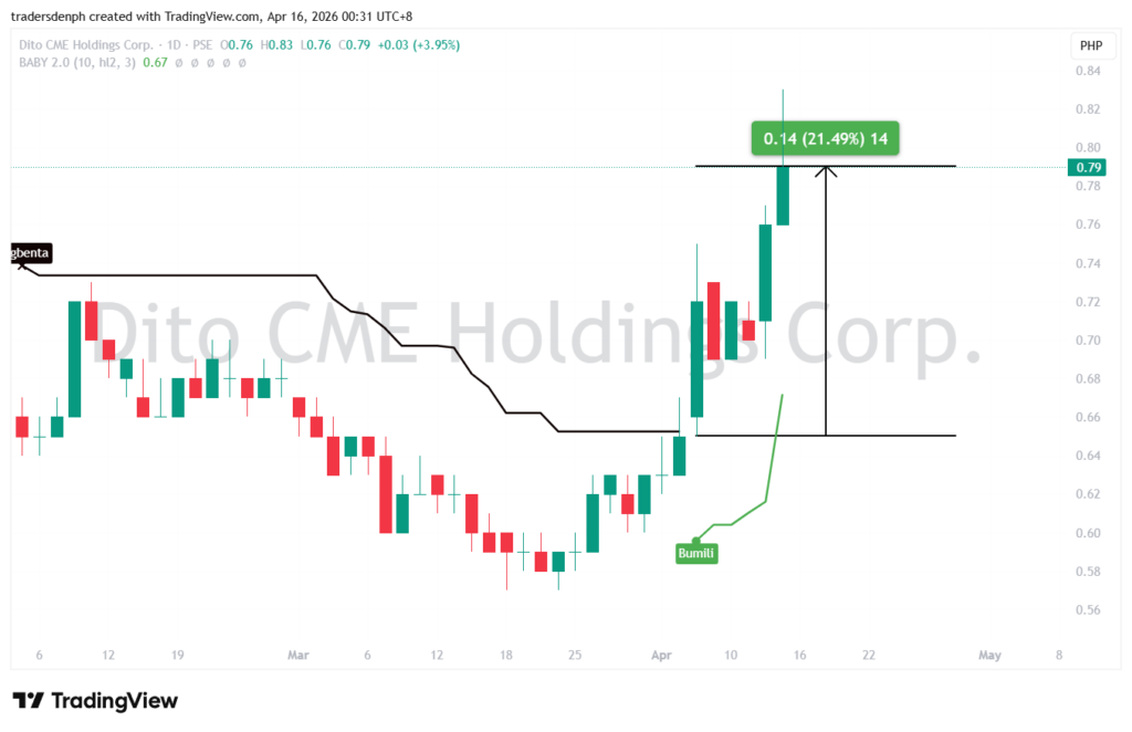 Over 21 percent gain na ang mga BABY 2.0 Strategy users kay DITO at wala pa siilang exit signal.
