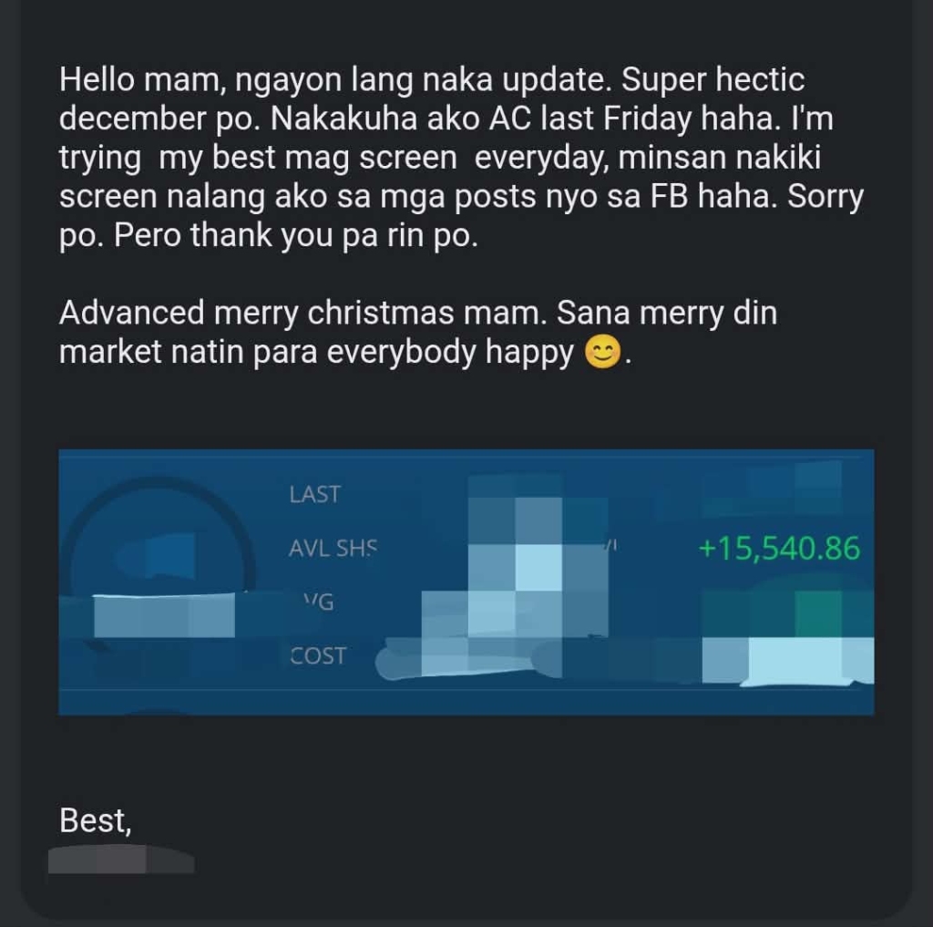 If you are interested to learn how to trade PSE stocks ay may 15-day mentorship kami na inooffer. May free Dividend Investing, Scalping startegy, BABY 2.0 Strategy, Fibonacci at Ichimoku siyang kasama.