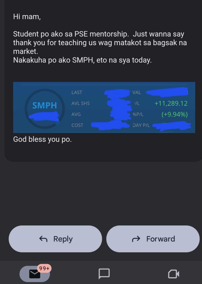 If you are interested to learn how to trade PSE stocks ay may 15-day mentorship kami na inooffer. May free Dividend Investing, Scalping startegy, BABY 2.0 Strategy, Fibonacci at Ichimoku siyang kasama.