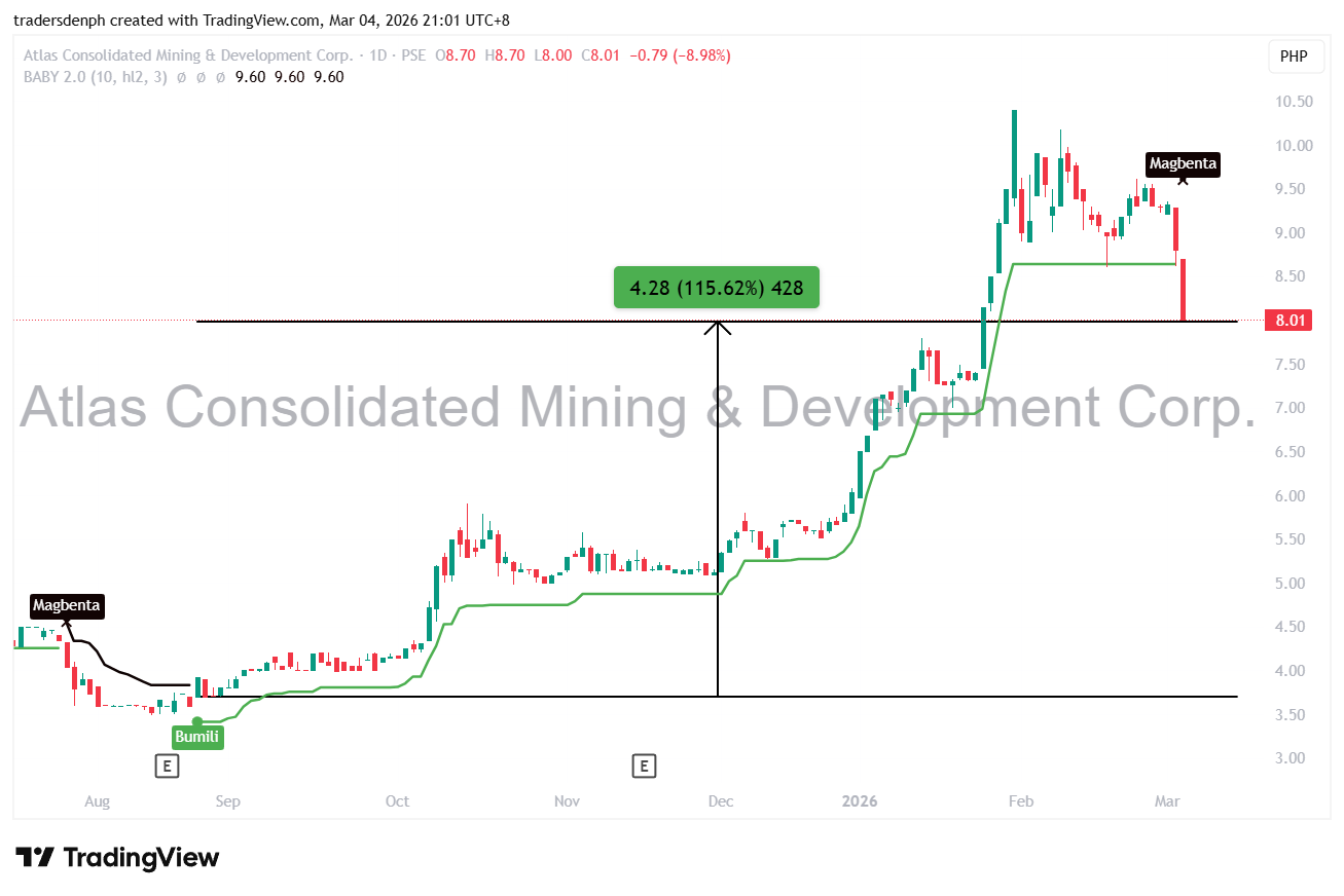 As you can see ay yan yung mga stocks na binigyan na ni BABY 2.0 Strategy ng exit signal.
