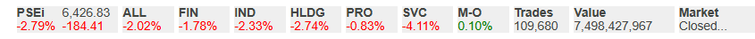 Bagsak ng close to 3 percent ang PSEI kahapon.