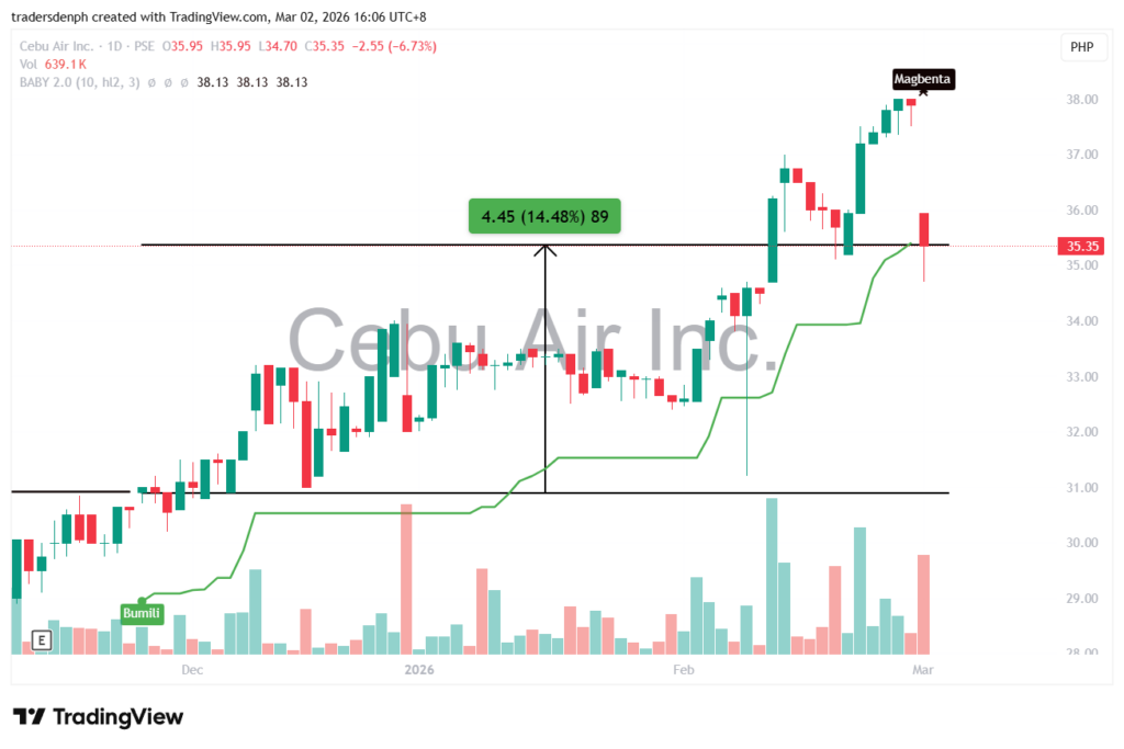 Ang BABY 2.0 Strategy ay nagbigay na ng exit signal kay CEB. Umexit na ang mga users sa kanya with over 14 percent profit.