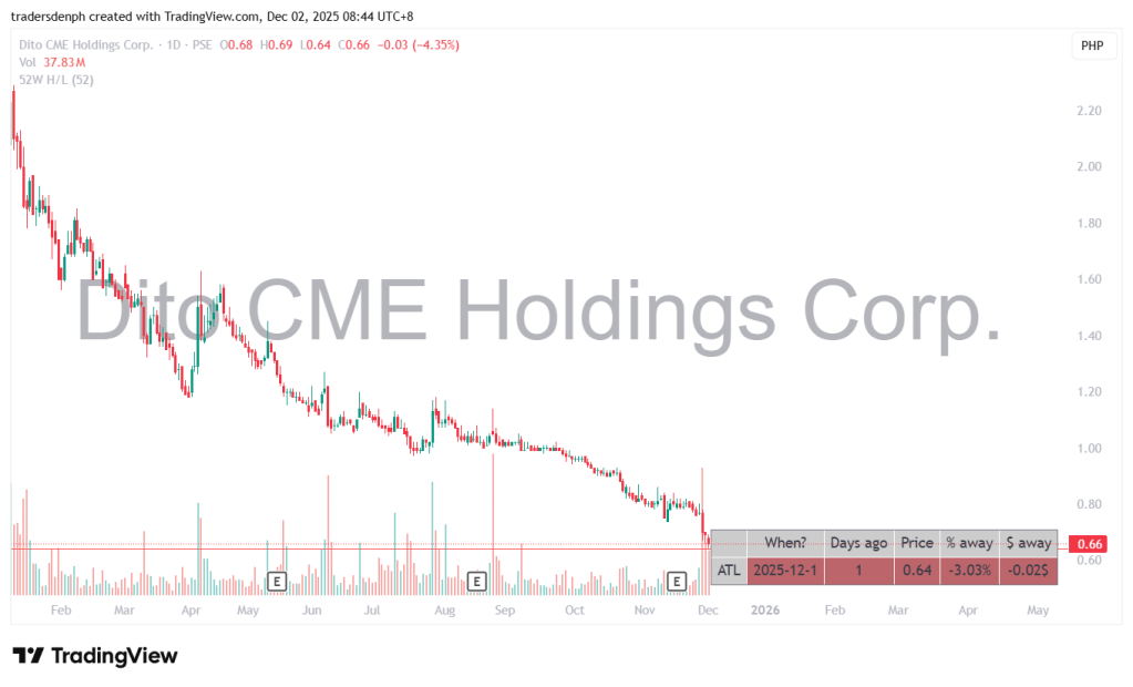 Gumawa ng bagong 52 week low si DITO at 0.64.