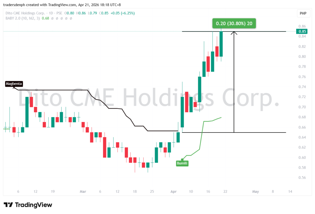 Today ay nagclose at 0.85 si DITO.