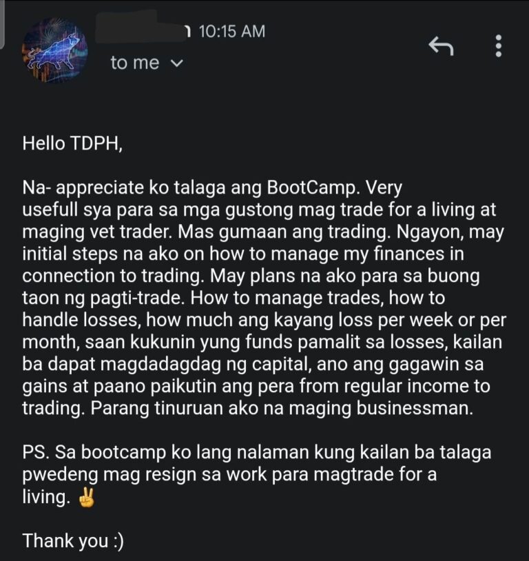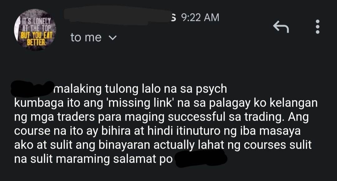 This is a very very specialized course na almost lahat ng nagtake ay umayos ang trading results.