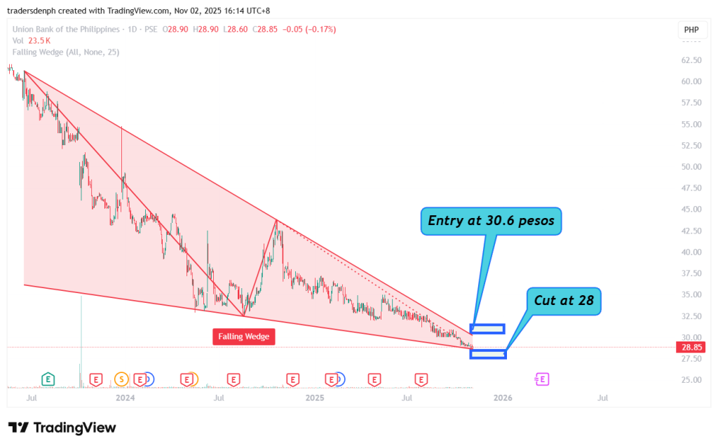 Walang entry unless umangat ang price sa 30.6 pesos kasi it might still continue to go down kasi nga nasa downtrend siya.
