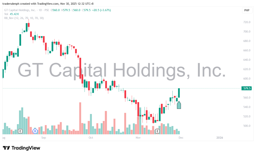 Nagkaroon ng entry signal si GTCAP kay Rob Booker Reversal indicator.
