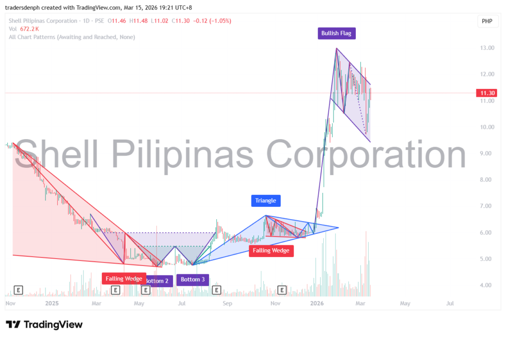 May Bullish Flag na nagpakita kay SHELL. Bullish continuation pattern siya.