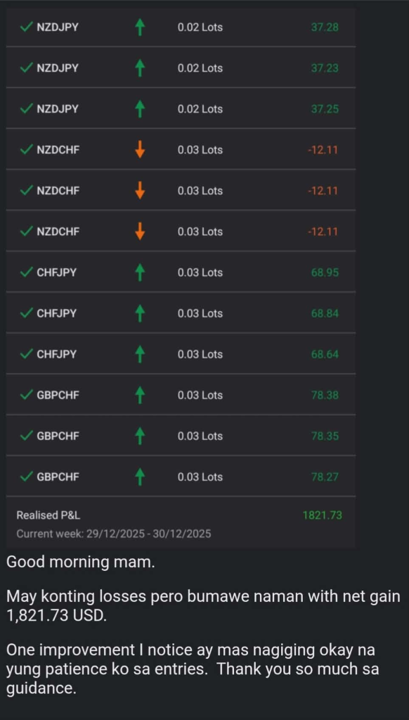 Blog Ito Ang Mga PROFIT Ng Aming Students Sa Forex Ngayong Linggo! December 30, 2025 / Tuesday pa lang at wala pa sa kalahati ang linggo na ito pero on a profit-spree na ang mga forex students sa kanilang trading!Heto ang ilan sa kinita nila ngayong week! Kaya mo din ito!Come join us! SECURE YOU SLOTS for Forex, Oil/commodities, Metals, Crypto and US stock market trading mentorship:https://form.jotform.com/232946879623472 REQUEST SLOT for PSE stock trading mentorship here: https://form.jotform.com/241343777522458 If you get a mentorship slot TODAY ay ang daming FREEBIES! No cash? problem, we accept ALL MAJOR VISA and MASTERCARD CREDIT CARDS. DO NOT MISS OUT!
