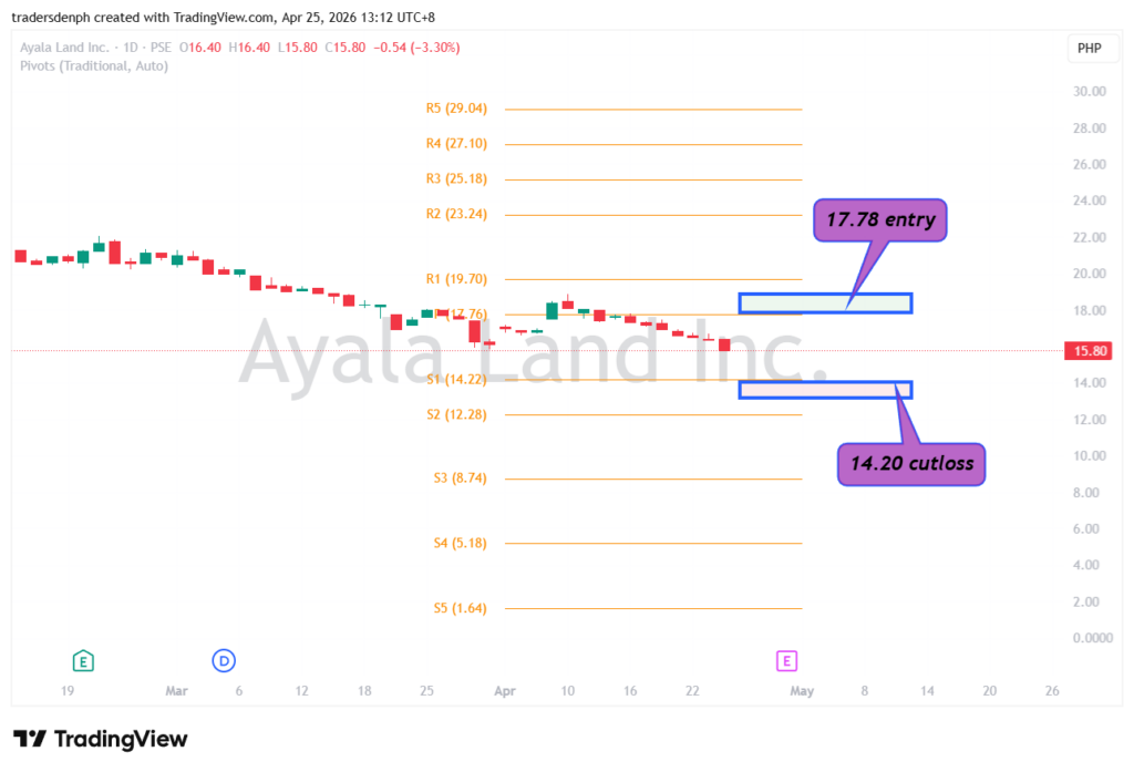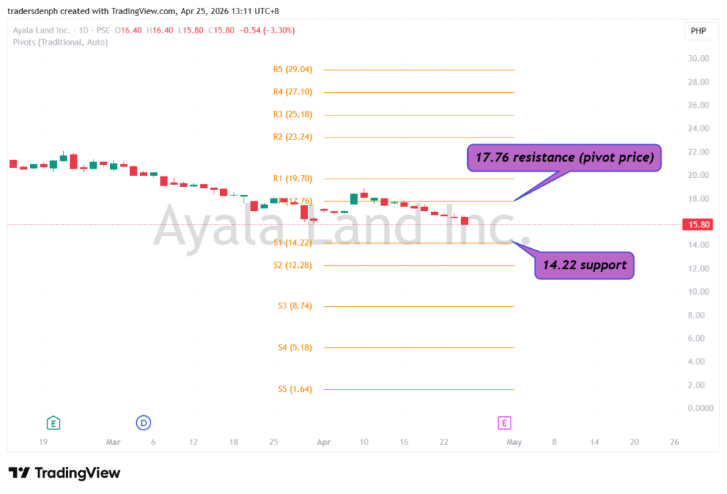 May support ka sa 14.22 pesos. May resistance ka sa 17.76 pesos.