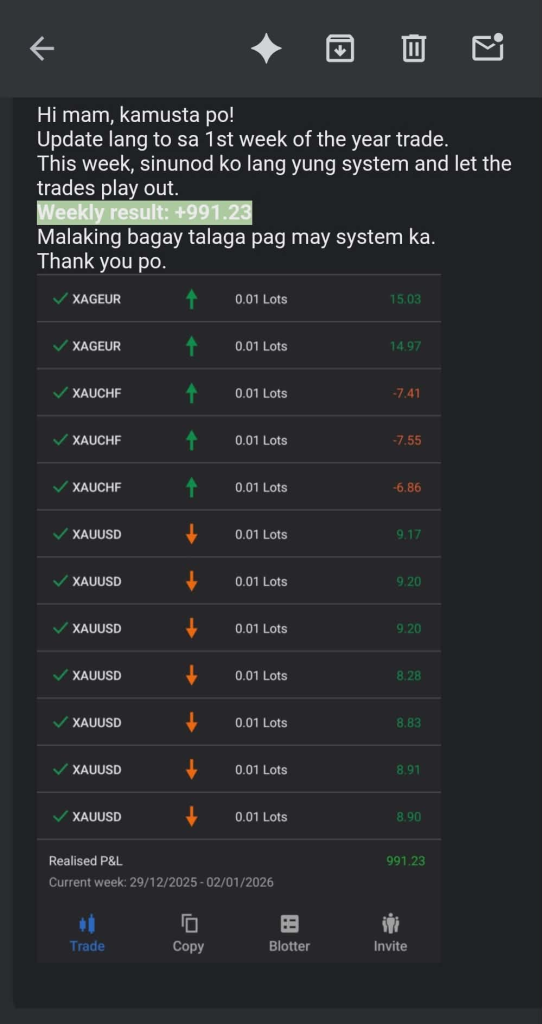 Blog Metals Masterclass Students Are Milking Every Penny From The Market! (Mindblowing Profits This Week!) January 3, 2026 / Gold and Silver are moving wild this week!Madaming naipit, nasunog at nawipeout!Our Metals Masterclass made great profits. Yan ang mga kinita ng ilang Metals Masterclass student this week!Kaya mo din ito!Come join us! SECURE YOU SLOTS for Forex, Oil/commodities, Metals, Crypto and US stock market trading mentorship:https://form.jotform.com/232946879623472 REQUEST SLOT for PSE stock trading mentorship here: https://form.jotform.com/241343777522458 If you get a mentorship slot TODAY ay ang daming FREEBIES! No cash? problem, we accept ALL MAJOR VISA and MASTERCARD CREDIT CARDS. DO NOT MISS OUT!