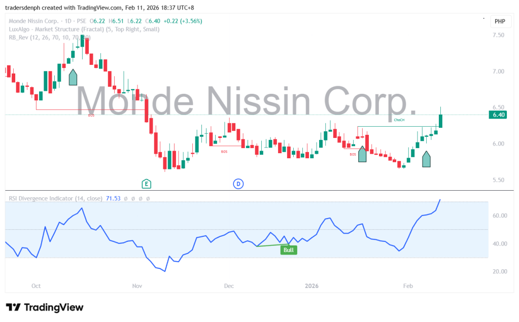 May CHoCH na ang price ni MONDE, may RSI Bullish Divergence pa.