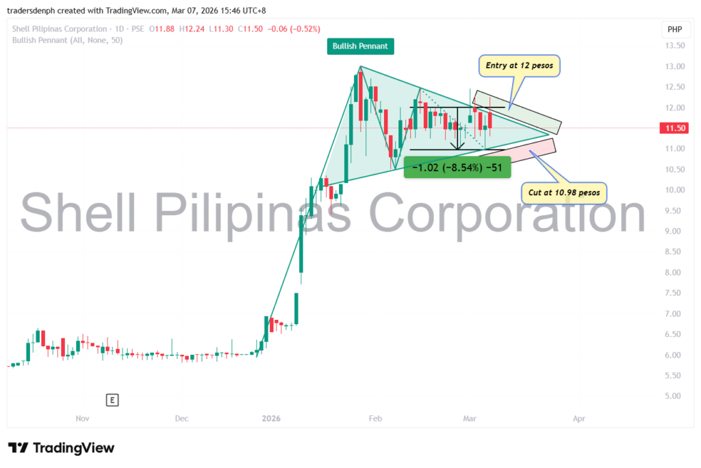 Ang entry ay nasa 12 pesos. Ang cutloss ay nasa 10.98 pesos.