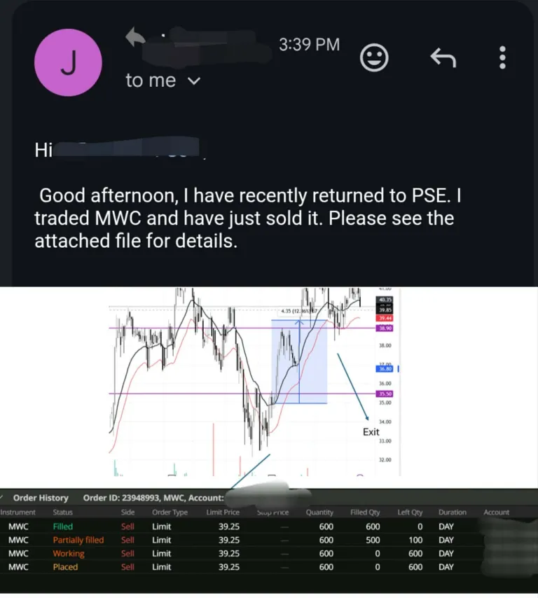 You can also join our PSE Masterclass if you want a more advanced trading mentorship sa PSE. May malupet na strategy. May live trading habang open ang market. May mga stoploss at autocutloss sa PSE market.