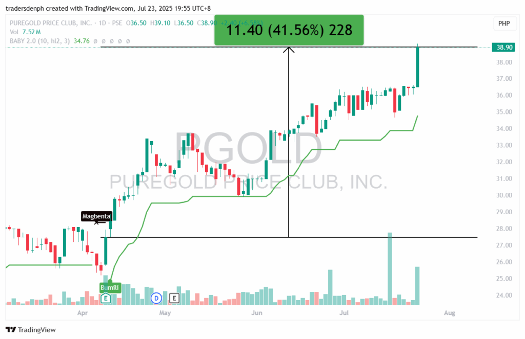 Tahimik na nakaupo ang mga BABY 2.0 Strategy users kay PGOLD with over 41 percent profit na wala pang exit signal.