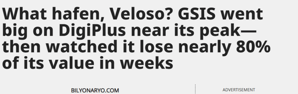 Read more here: What hafen, Veloso? GSIS went big on DigiPlus near its peak—then watched it lose nearly 80% of its value in weeks