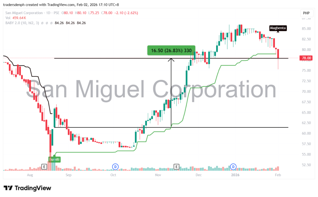 Over 26 percent ang kinita ng mga BABY 2.0 Strategy users kay SMC after magbigay ng exit signal ng strategy.