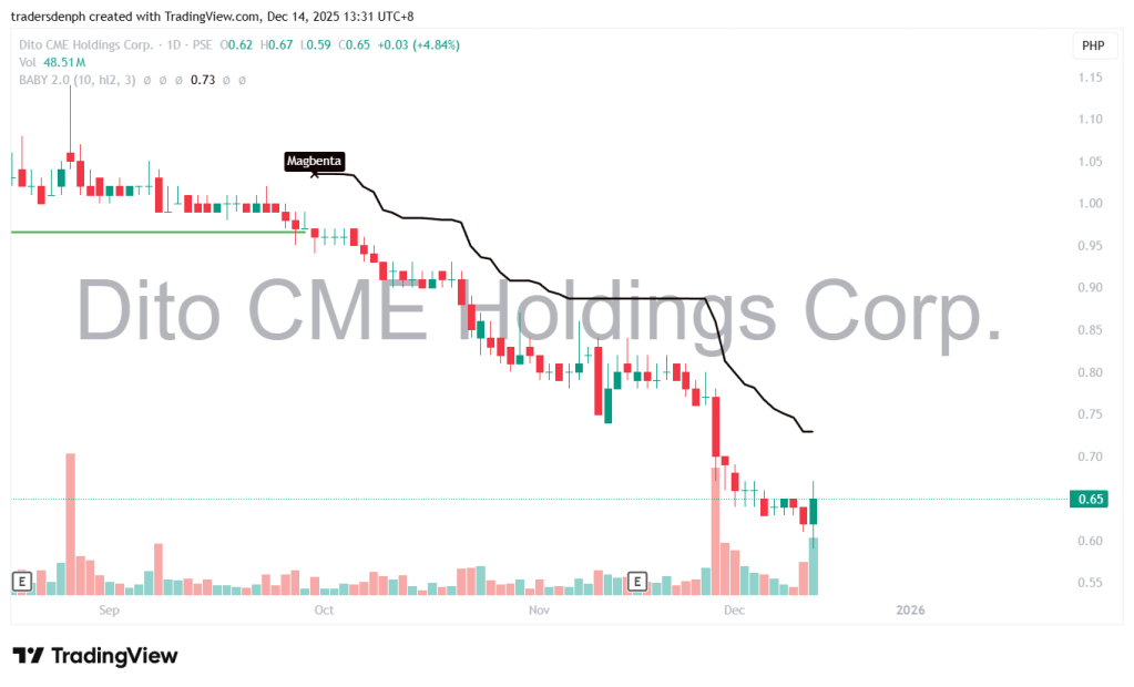 Kung trend-follower ka naman ay wala pang entry signal ang BABY 2.0 strategy kay DITO sa ngayon.