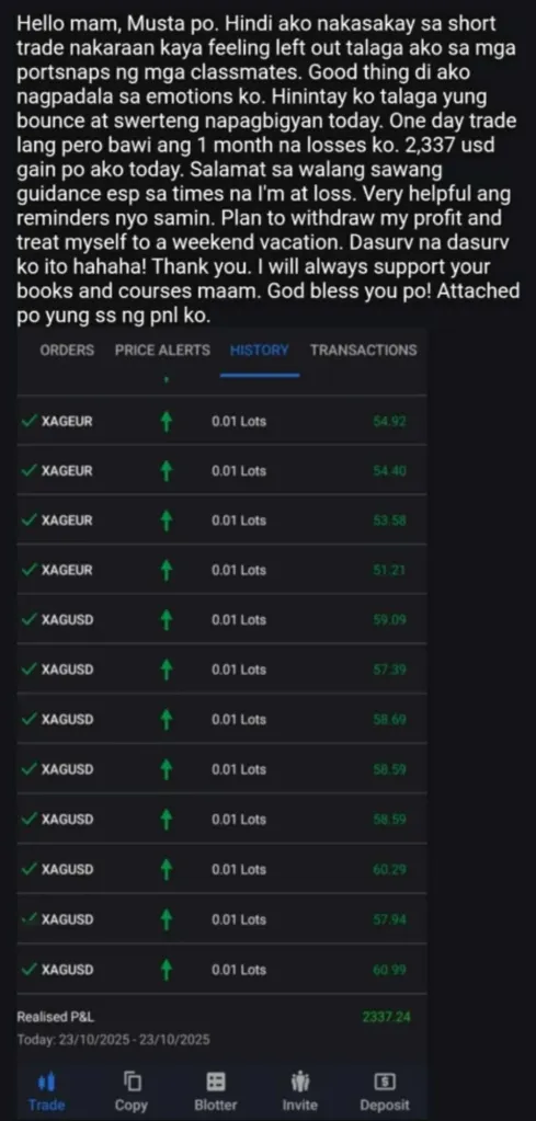 One of my Metals Masterclass students ay hindi nakasakay sa pagshoshort nung nagbagsakan ang GOLD at SILVER.