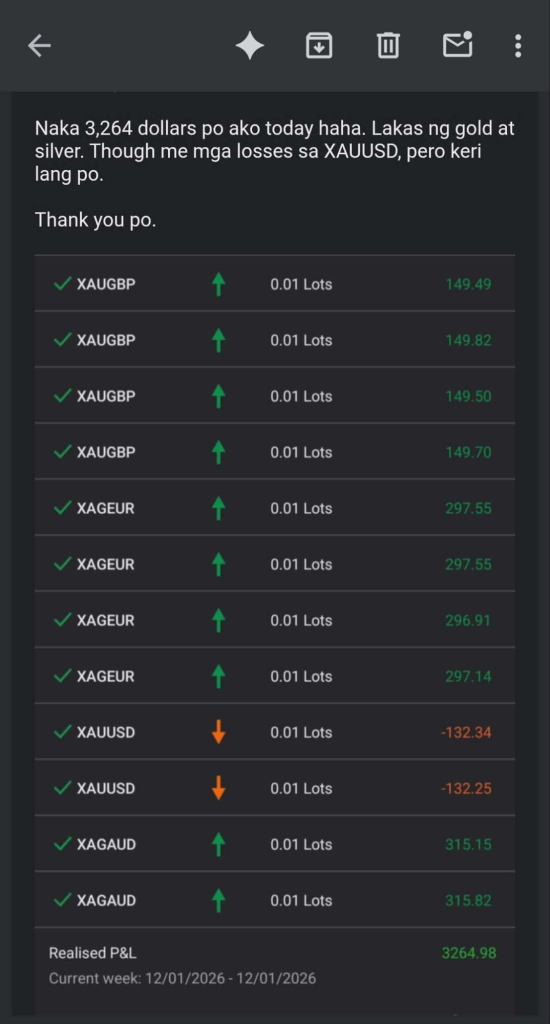 Blog Weekly Profits Ng Metals Masterclass Students! January 17, 2026 / Weekend na naman.Let me show you some trade performane of our Metals Masterclass this week! You can really earn from trading Gold and Silver if you join us.Come join us!Avail it here:https://form.jotform.com/232946879623472If you join us TODAY ay ang daming FREEBIES!