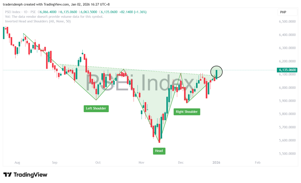 Nabreak na ang neckline ng Inverted Head And Shoulders Pattern sa PSEI.