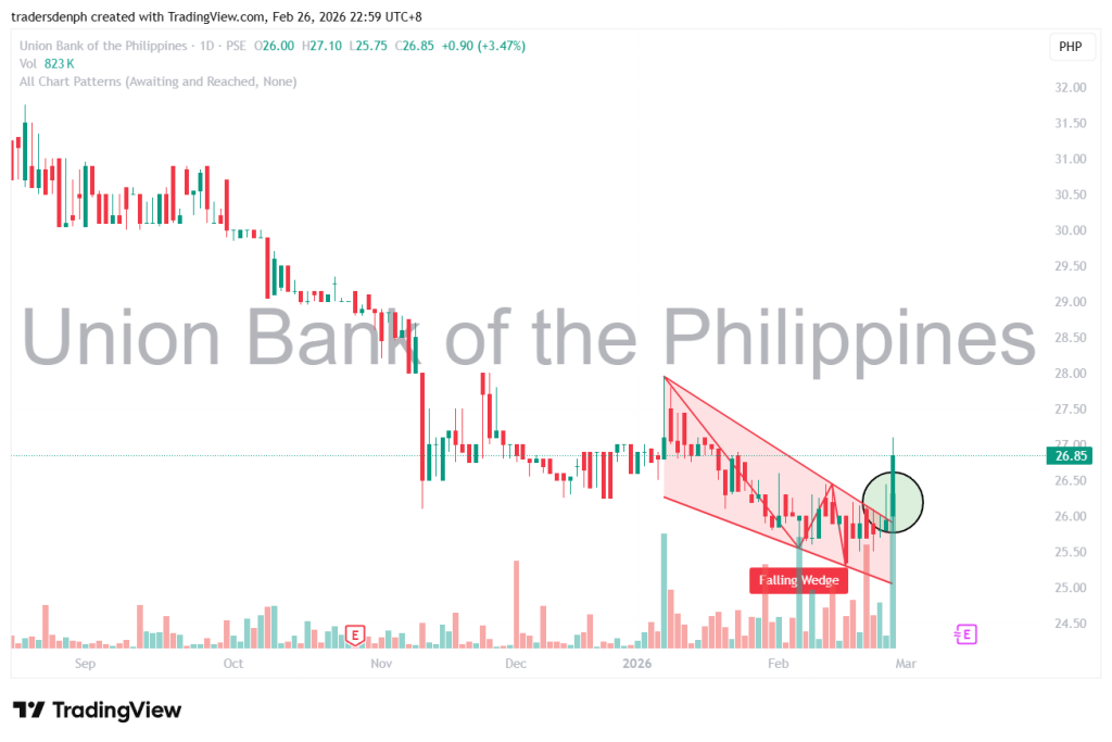 May entry signal na din sa Falling Wedge Chart Pattern kasi nabreak na ang upper line ng pattern.